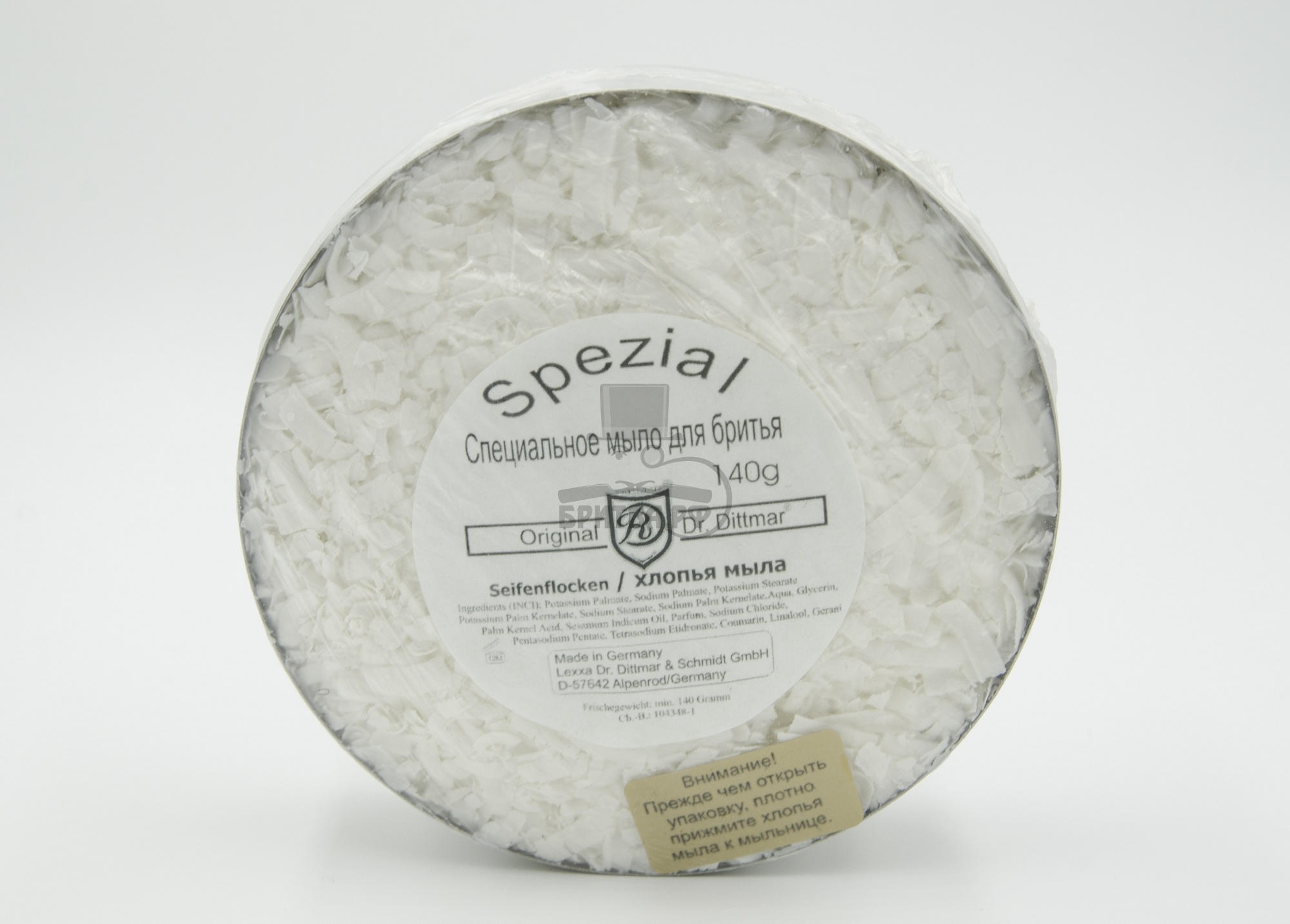 Dr.Dittmar Spezial Мыло для бритья выполнено в виде хлопьев. Имеет приятный запах чистоты и свежести без добавления искусственной парфюмерной отдушки. В составе используются только натуральные ингредиенты, взбивается в приятную густую и нежную пену, смягчая щетину, обеспечивая комфортное скольжение лезвия.