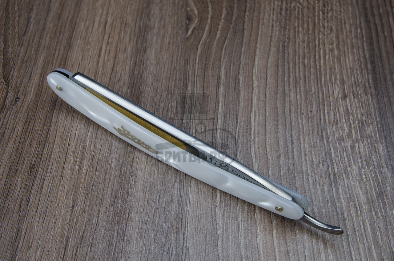 В данном разделе мы предлагаем вам приобрести одну из лучших моделей из нержавеющей стали. Dovo Inox Perlamutt представляет собой бритву безукоризненного качества, которая является неотъемлемым атрибутом любого настоящего мужчины.Производители, использовали в изготовлении данной бритвы только лучшие образцы нержавеющей стали, сумели создать действительно достойную модель опасной бритвы, которая отличается своими показателями качества и отменным внешним видом. Стоит отметить, что опасная бритва создана вручную и прошла строгие инженерные тестирования, что гарантирует ее абсолютную безопасность, долговечность и практичность. Для изготовления лезвия использовалась нержавеющая сталь, для производства рукоятки было решено применить такой материал, как синтетическая смола блестяще белого цвета, имитирующая перламутр. Такое гармоничное цветовое решение придает изделию особый шарм и неповторимый стиль.